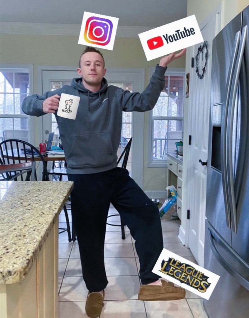 I chose a picture of me from a year or so ago and included the symbols for youtube, reddit, and league of legends. I enlarged the League of Legends symbol due to the possibilities that this game has brought forth recently. Coaching League has been a major blessing within my life, and I am thankful for the time it has given me to bond and grow with my team. At first the strategy of this game can be quite tricky, and three of the students who joined the team this semester had never played the game before. The most important theme that I draw from League is patience. This is a virtue that allows you to stay safe and level headed, and each practice the students on my team continuously reflect growth and understanding. Another important factor that I reinforce through the coaching of League is moderation. I emphasize that fact that school should always come before playing League, and if the student’s grades begin to falter then they have to miss practice until their grade rises.